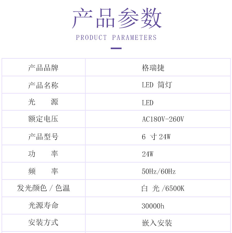 格瑞捷 LED筒灯 6寸24W 白光/个
