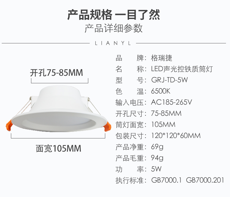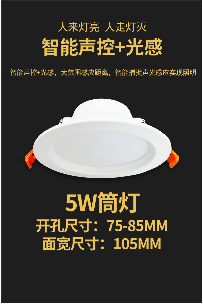 格瑞捷 LED声光控铁质筒灯GRJ-TD-5W/个