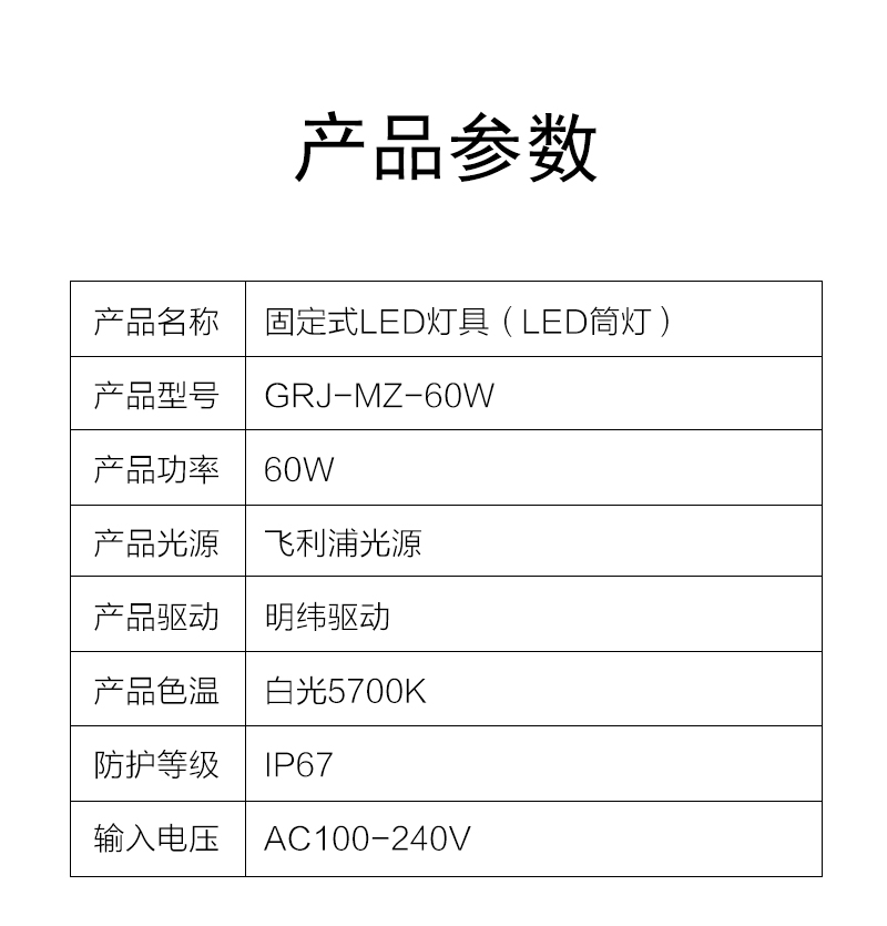 格瑞捷 固定式LED灯具(LED筒灯)GRJ-MZ-60W 白光5700K/个