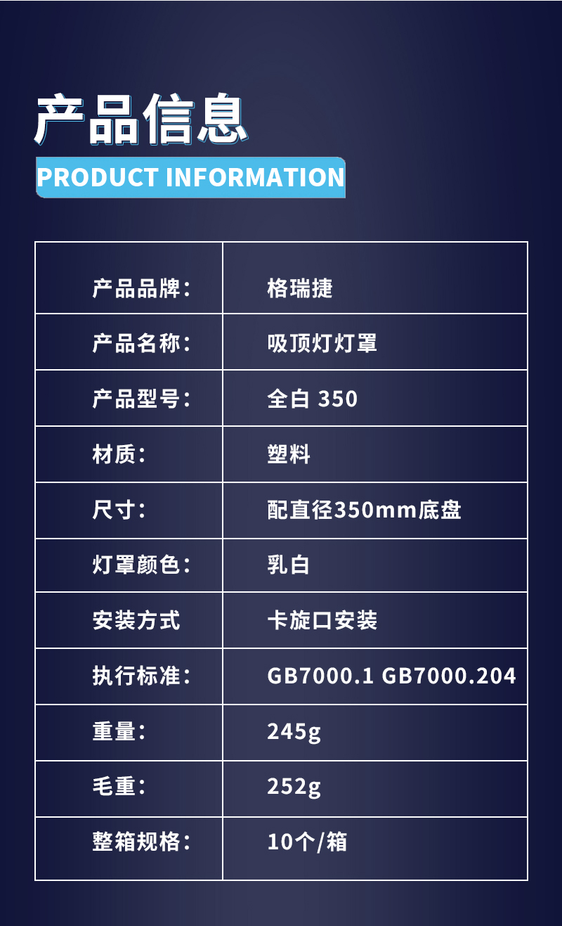格瑞捷 LED 吸顶灯 灯罩 直径350mm/个