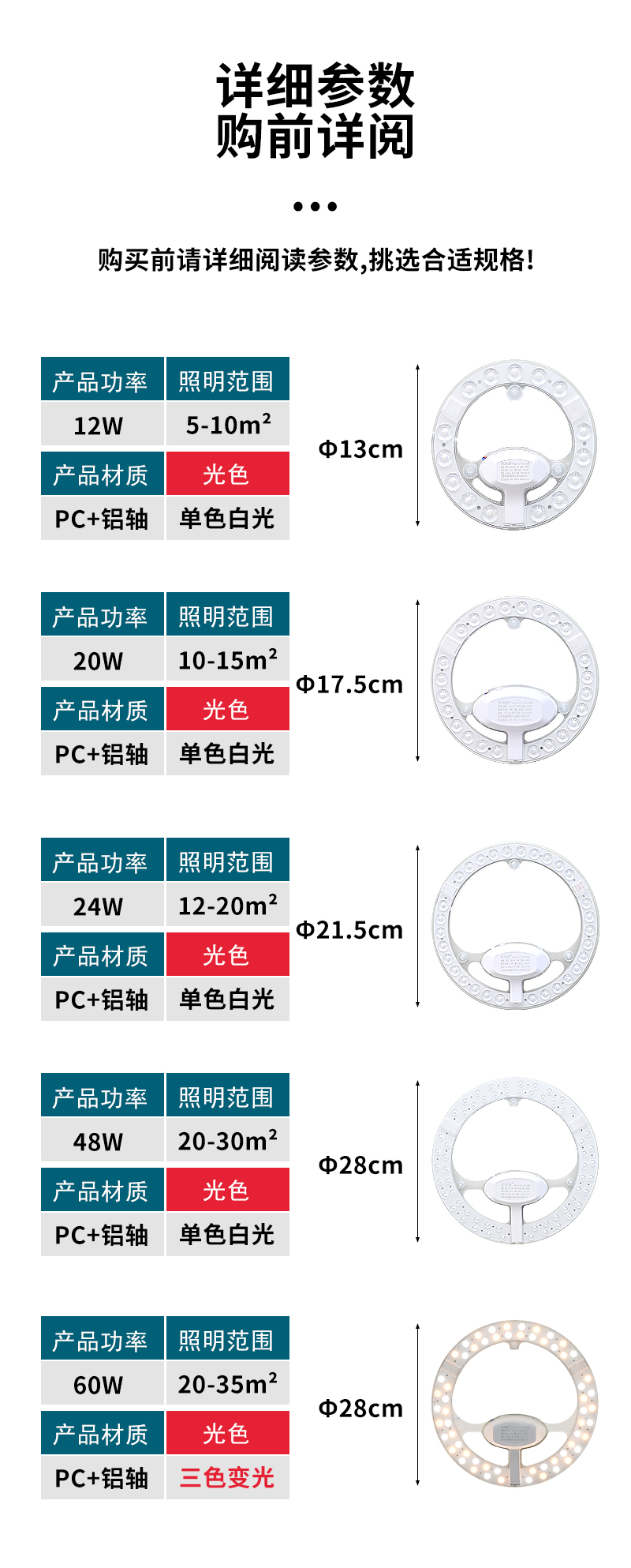 格瑞捷 LED 吸顶灯 环形灯芯 60W 三色变光/个