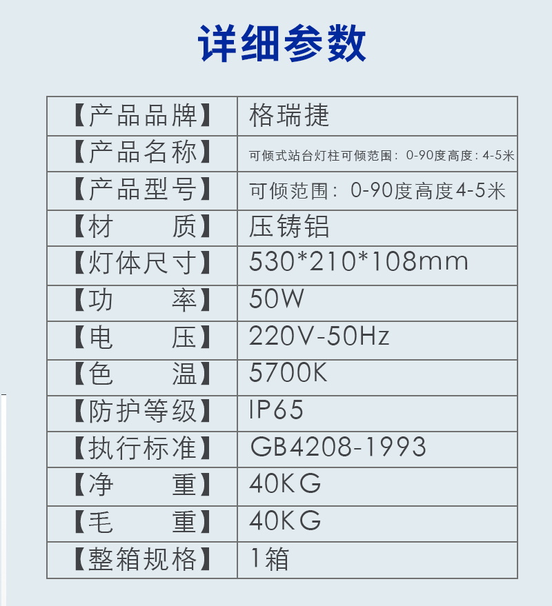 格瑞捷 可倾式站台灯柱可倾范围0-90度高度4-5米 /套