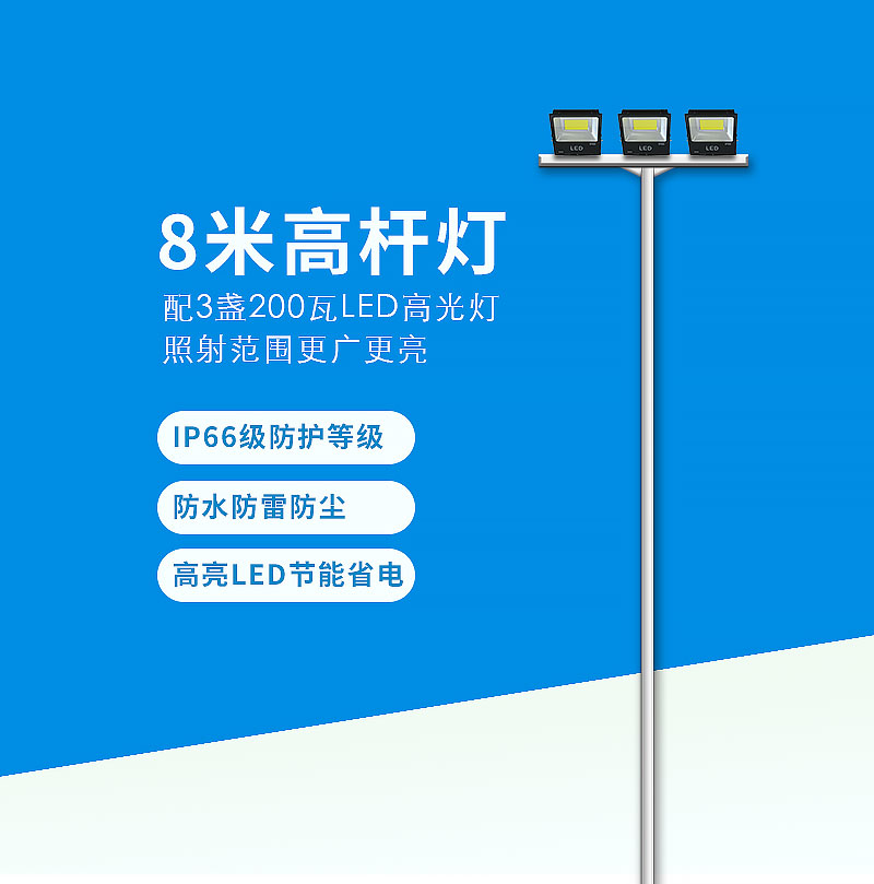 格瑞捷 路灯杆8米杆带直支架200W灯具3盏 /套