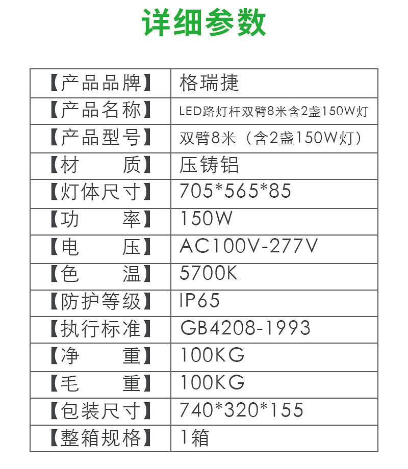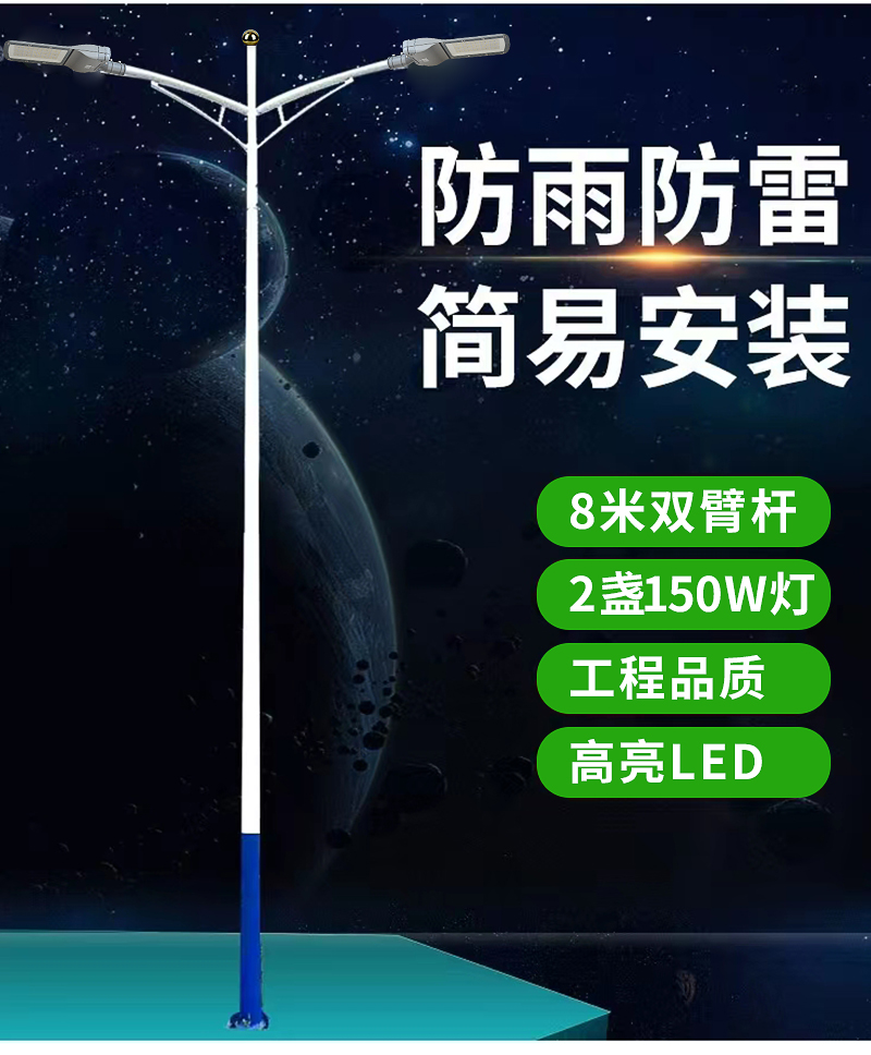 格瑞捷LED路灯杆双臂8米(含2盏150W灯头)/组
