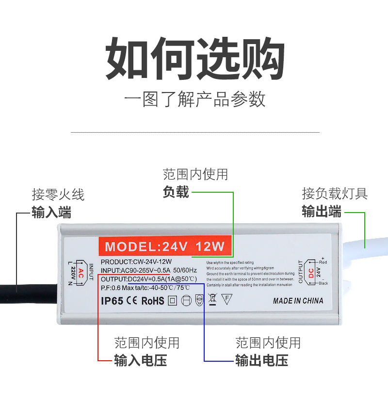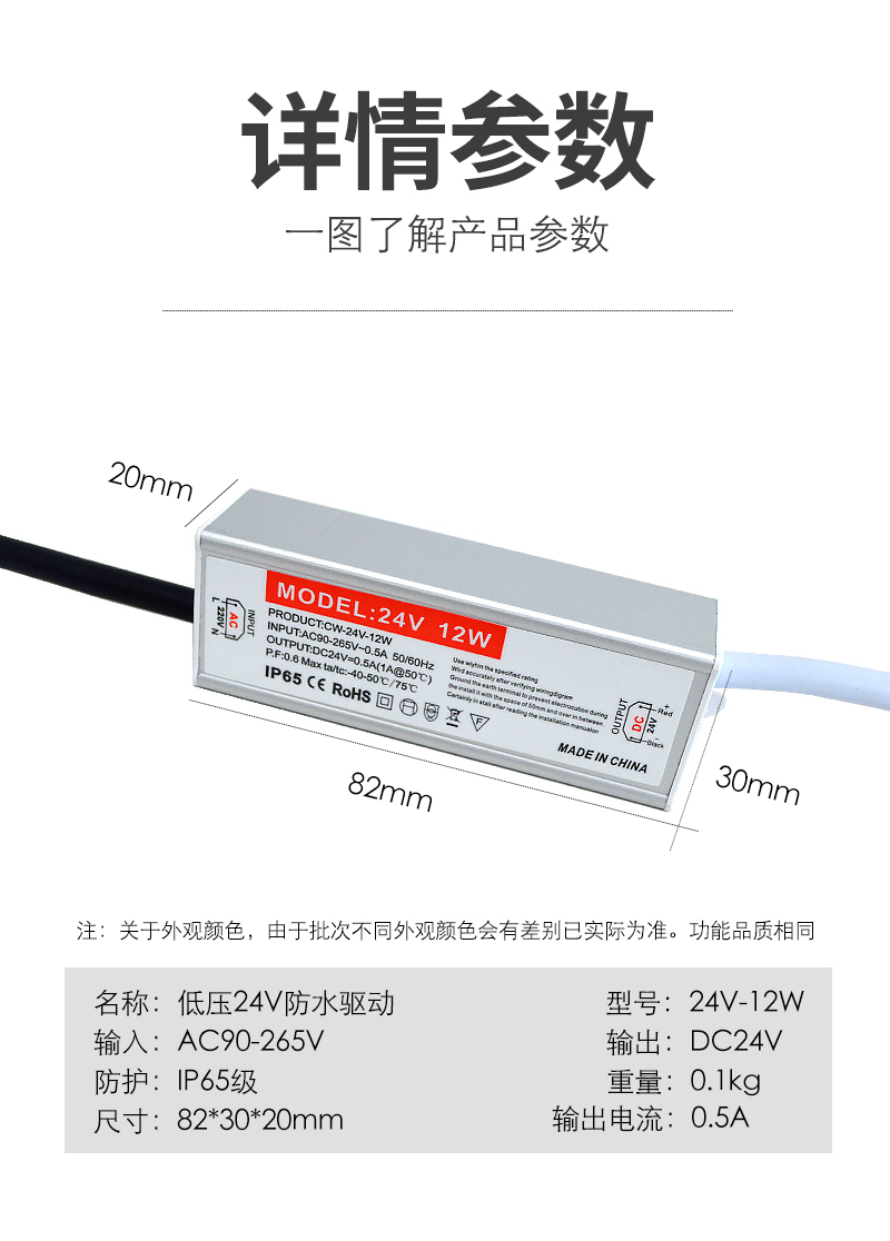 格瑞捷 低压24V防水 LED驱动电源 12W/个