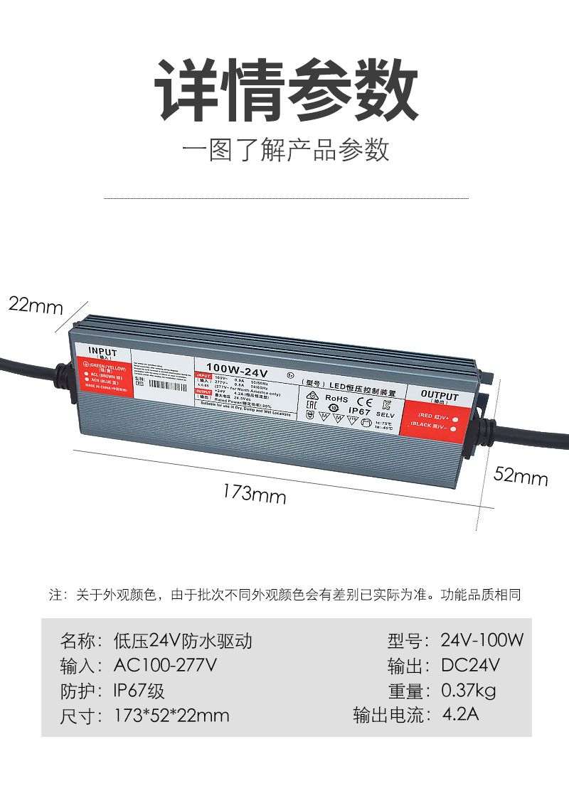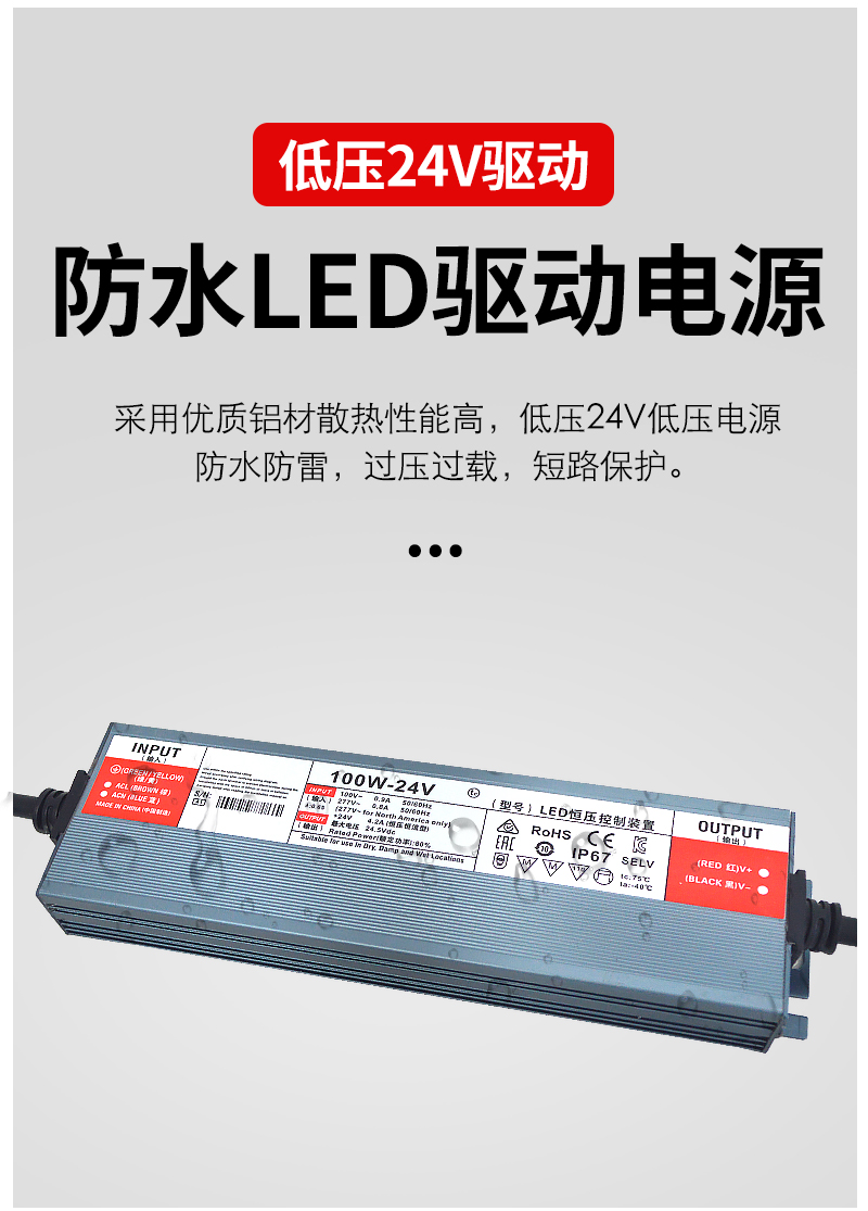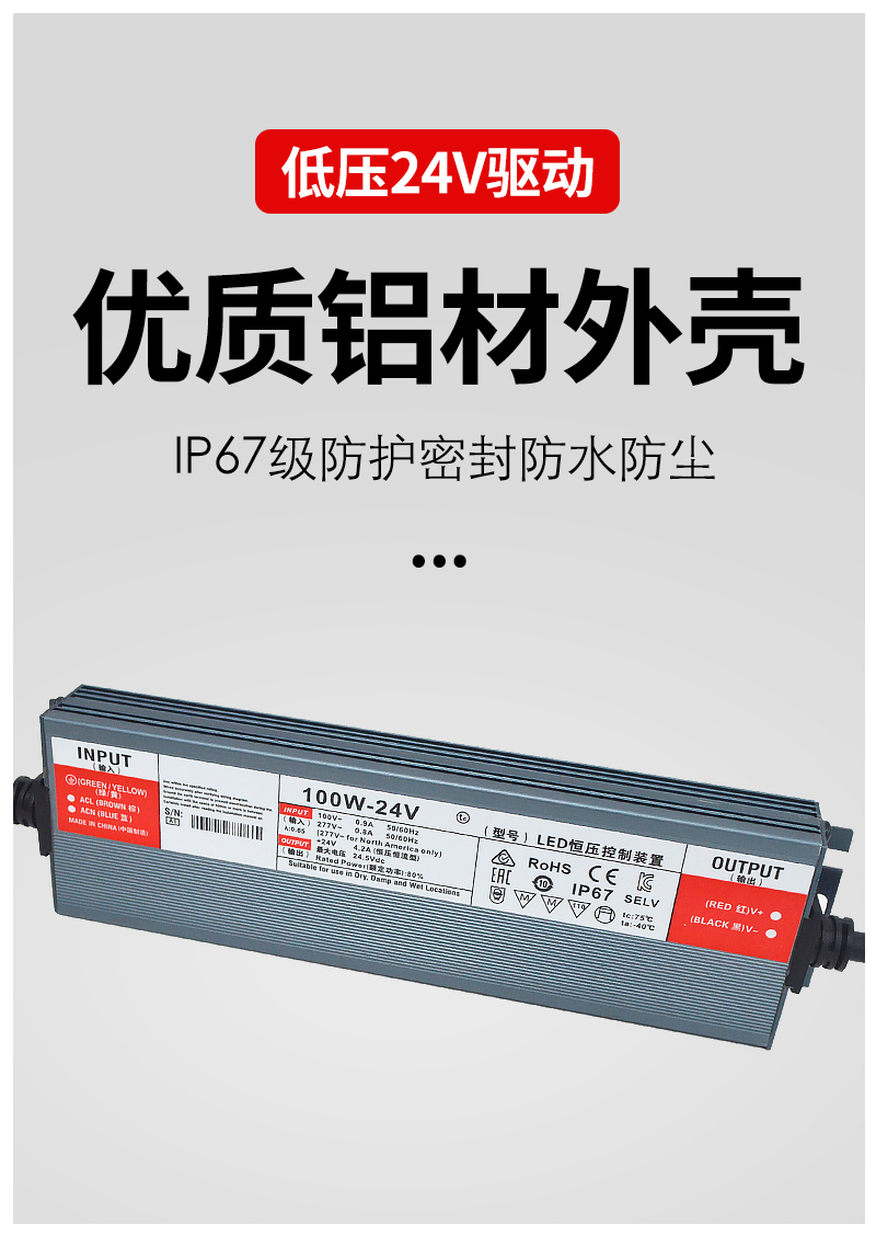格瑞捷 低压24V防水 LED驱动电源 100W/个