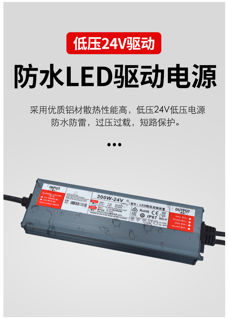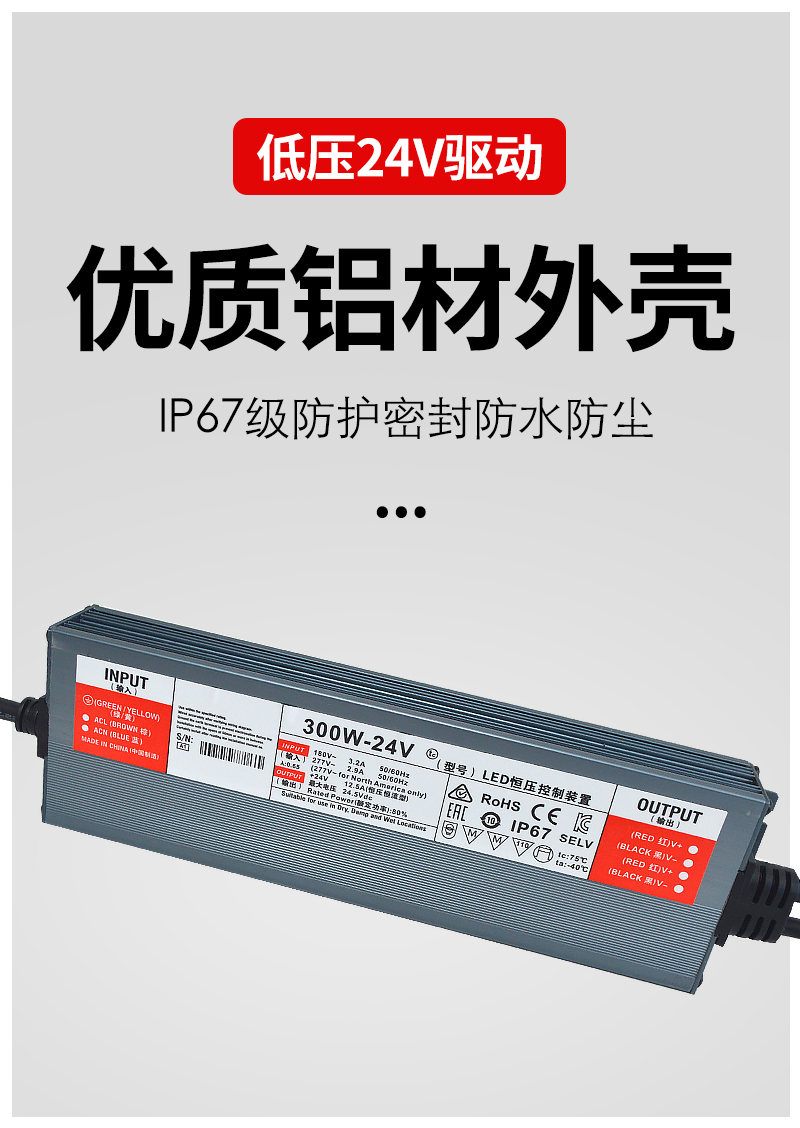 格瑞捷 低压24V防水 LED驱动电源 300W/个
