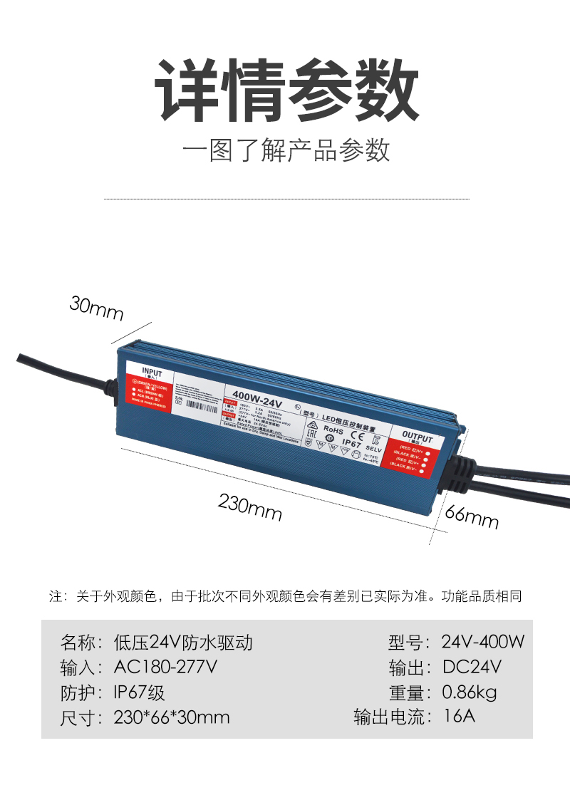 格瑞捷 低压24V防水 LED驱动电源 400W/个