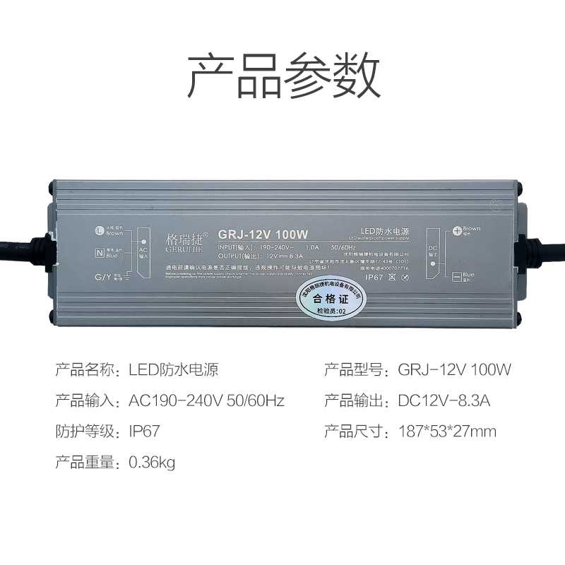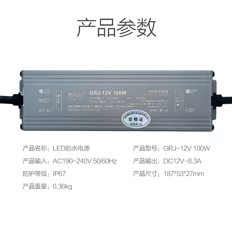 格瑞捷 LED防水电源 GRJ-12V 100W/个