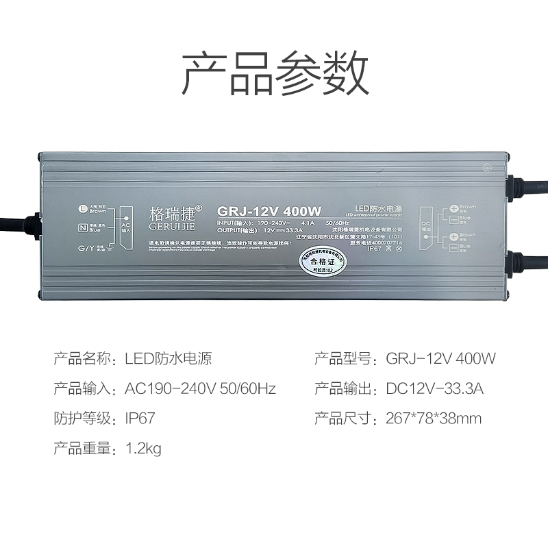 格瑞捷 LED防水电源 GRJ-12V 400W/个