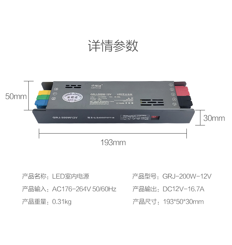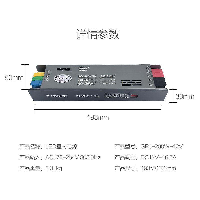 格瑞捷 LED 室内电源 GRJ-200W-12V/个