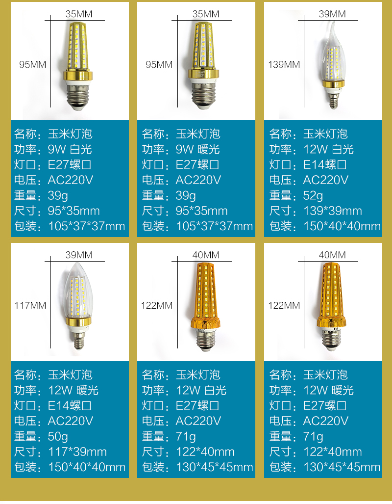 格瑞捷 LED玉米灯泡 12W E27螺口 暖光/个