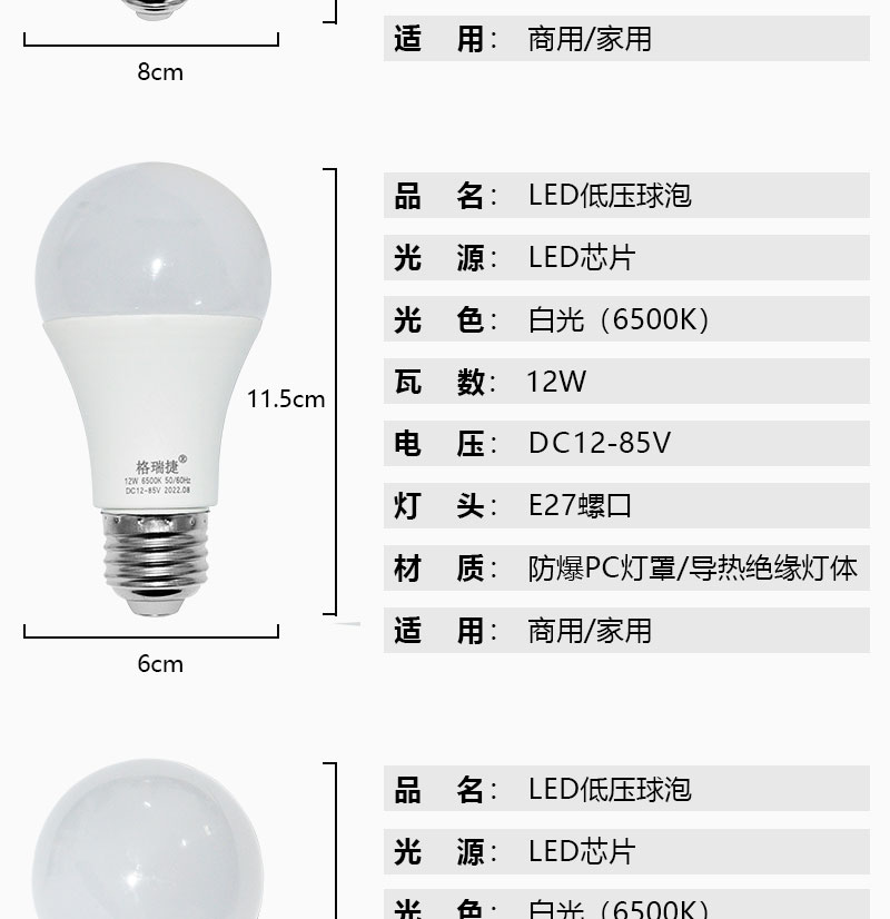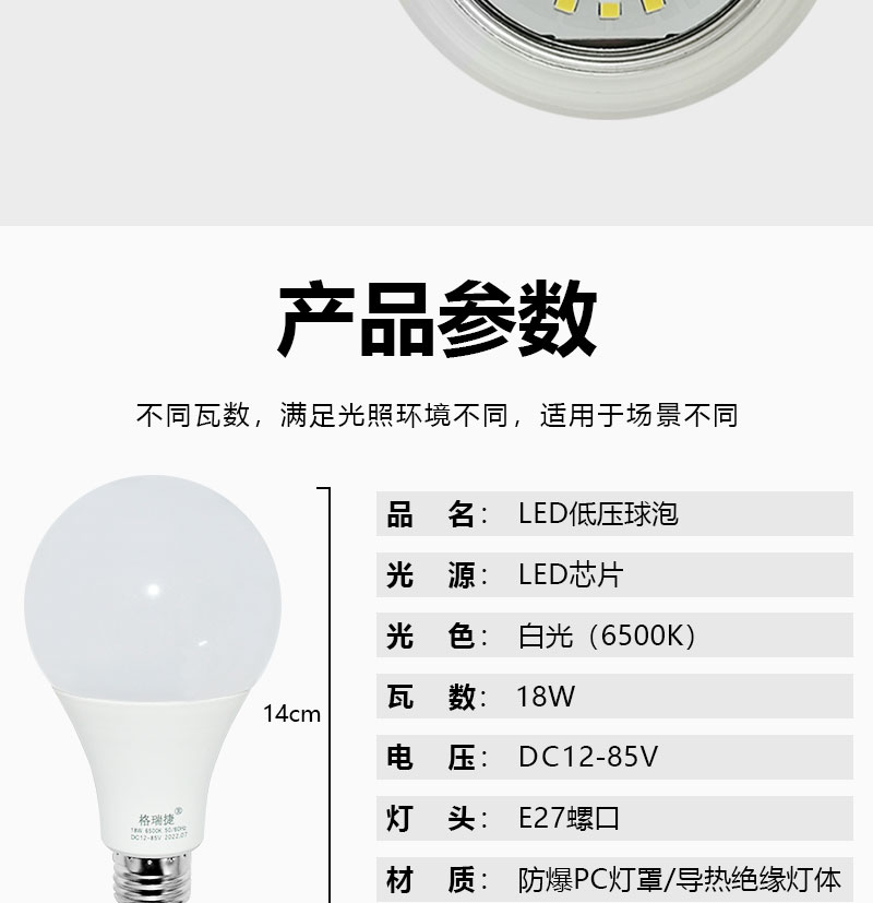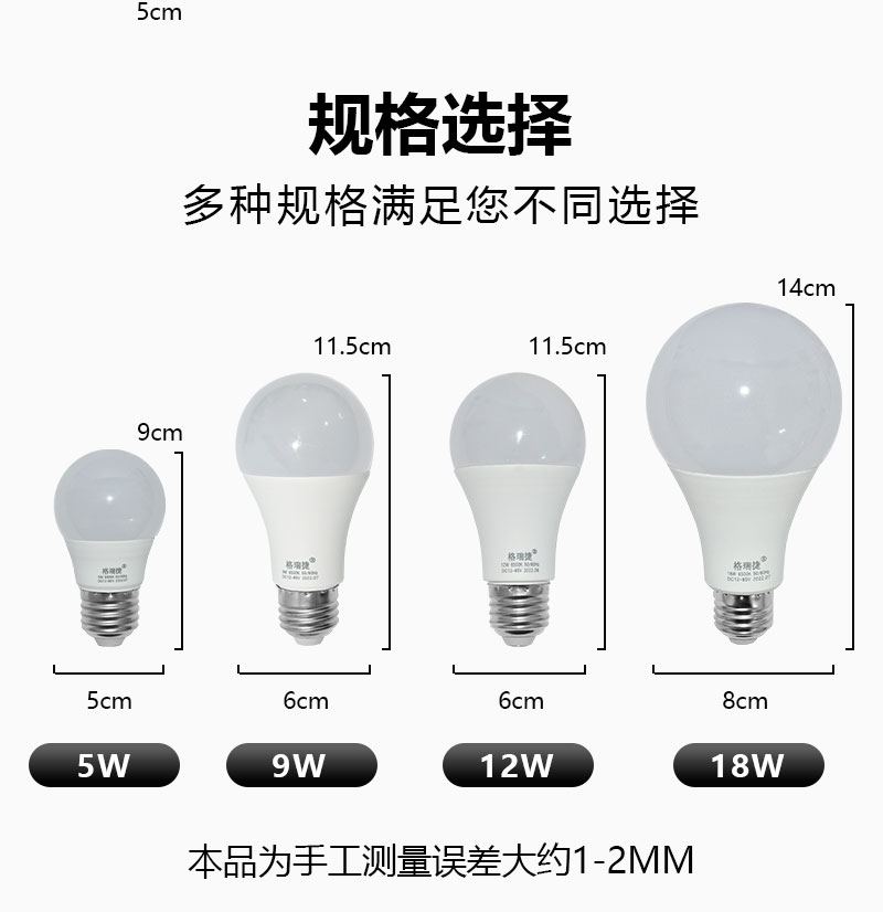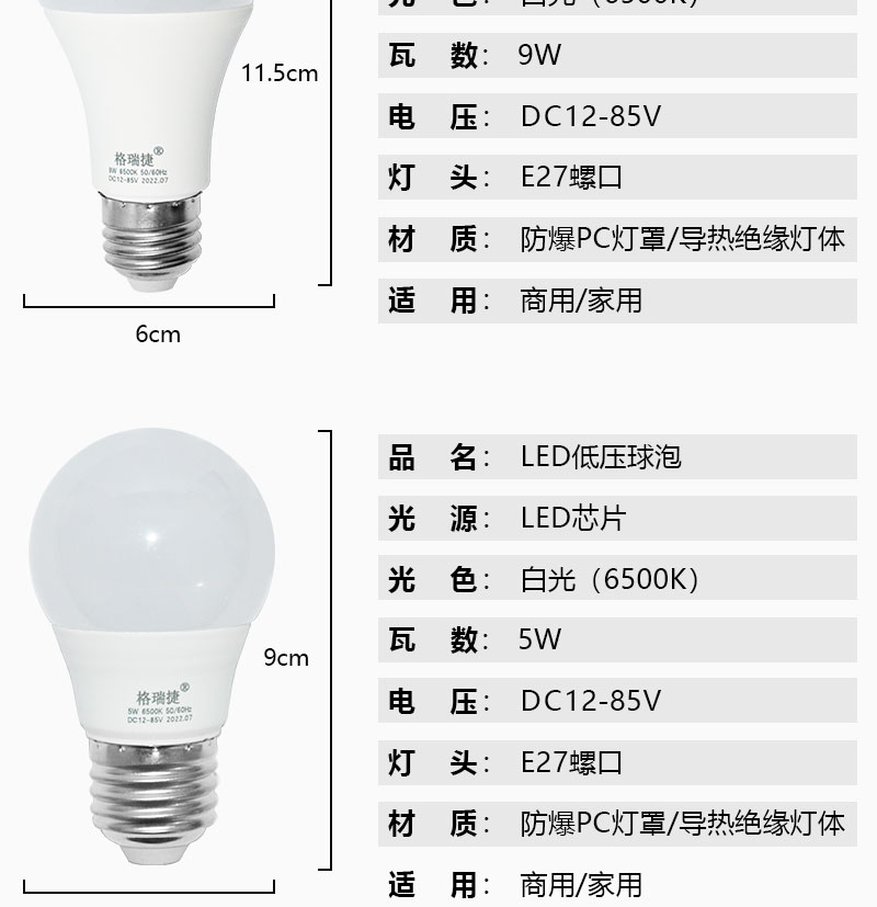 格瑞捷 LED灯泡 低压DC12-85V 9W 白光/个