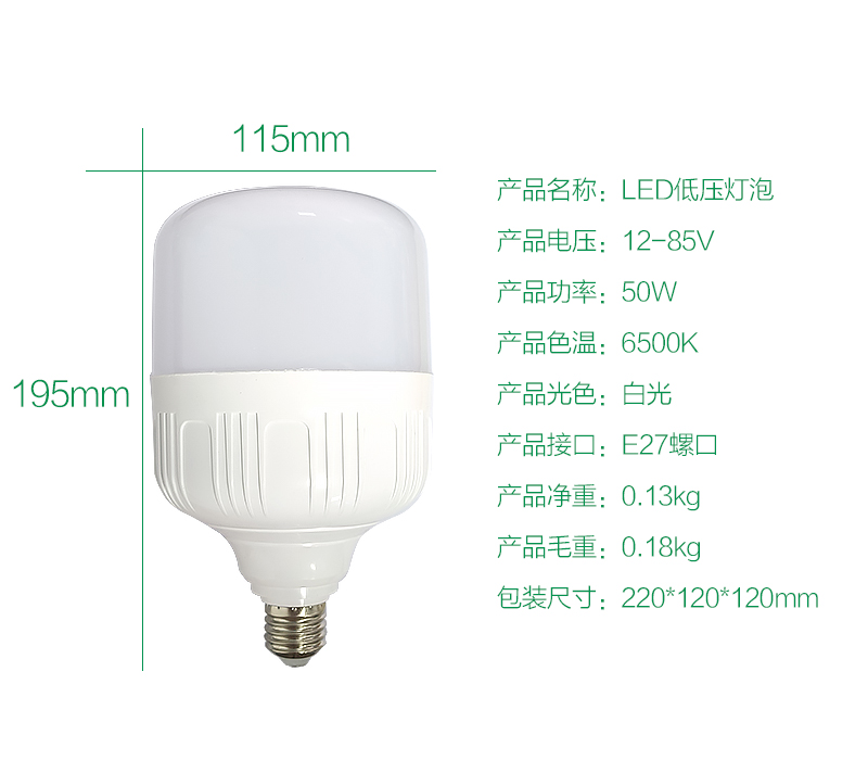 格瑞捷 LED灯泡 低压DC12-85V 50W 白光/个